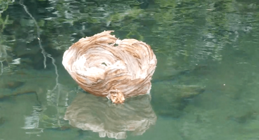 There is much movement(s) in our lives at this deep summer time of Lammas. We unplugged from the digital world last week and plugged into Nature’s world. We open this blog with a 4 minute video of our spontaneous co-creation-making with the Quw’utsun Sta’lo’ (more recently named the Cowichan River) on Vancouver Island, British Columbia, Canada. While on a hike Michael found an abandoned yellow-jacket wasp nest shell. When we stopped at the edge of the river he found a stick the length of a piccolo, and he began to pretend playing a tune and Barbara joined in with her harmonica. He then slid the stick through the nest entrance and realized he had made a floatable vessel, and it prompted the encounter event with the water that Barbara documented. The video has inspired the focus question of this blog, where is the current taking us?