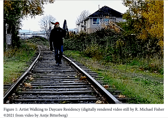 This is a compilation of happenings from an artist residency at an urban core daycare and kindergarten site from July-December, 2021. The artist provides some notes on how to approach a residency, create site-specific art and work with the children, their teachers, care staff and the community surrounding the site. A newly coined concept of minusio, emerged over time and served as an invisible basis for art-care, in a sense the mirror(ing) of the gift of nurturing but also the lack of care—and offering a route to what human’s really desire, when they are not so busy and distracted by the banality of the world. See full article at Artizein: Arts & Teaching Journal