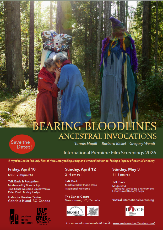 With gratitude to our screening sponsors – Gabriola Arts Council, Gabriola Museum and Crimson Coast Dance & Studio M* along with all our individual funders.