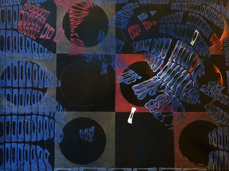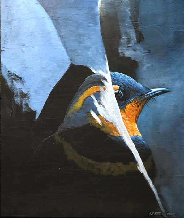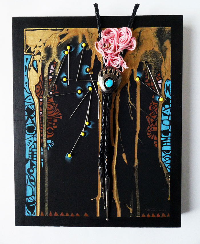 “Suspicions” is composed of art created in the past two years in styles Fisher has worked with for decades; Nature-based, Abstract, and Excess. He creates with a general temperament of spontaneous discipline that expresses impromptu approaches and mistakes. Making a mess, trying to resolve it, doing all he can technically and aesthetically, he designs artworks that reflect ‘worldly’ and ‘other-worldly’ integrations. His art insists on a freshness that is suspicious of nostalgia, hope, comfort, predictability, stability, and security. “With a conscious referencing that is sourced in my mind, if the artwork starts to look too quaint, too readable and familiar, I’ll make new choices and move in the opposite direction.”